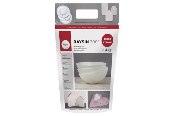 The casting powder "Raysin" is odourless and food-neutral, and it simply hardens in contact with air. It is white and sold in a bag of 4 kg.