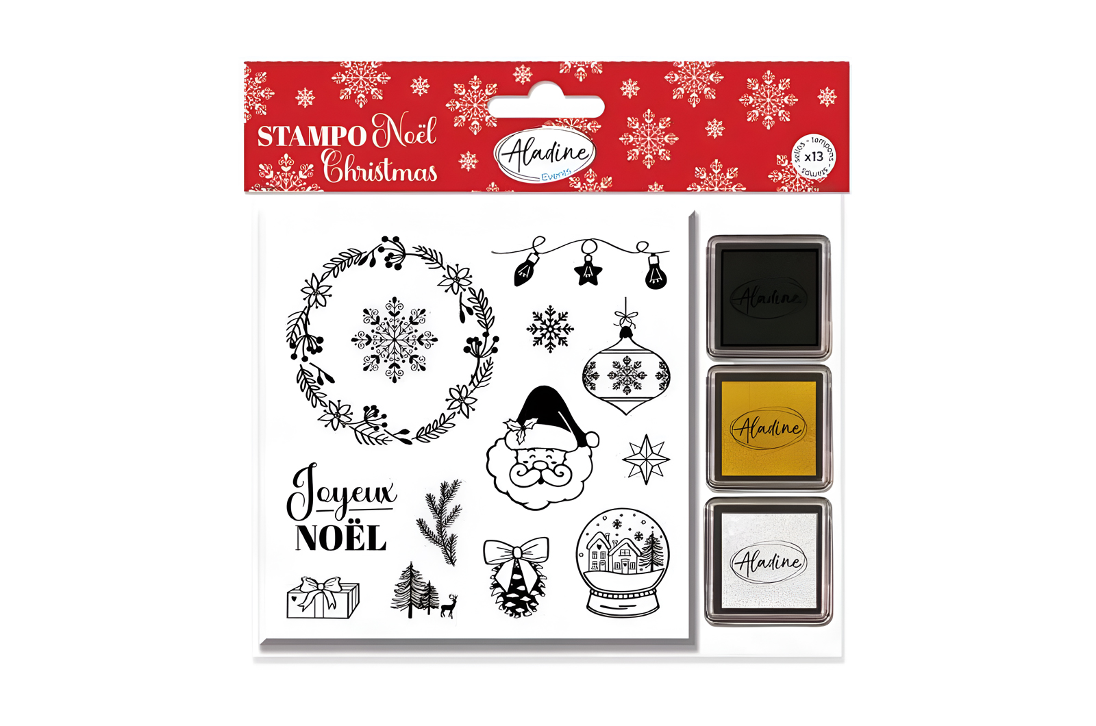 Dale un toque auténtico y festivo a tus creaciones navideñas con esta hoja de 34 sellos de espuma con motivos navideños tradicionales. Con diseños icónicos como Papá Noel, árboles de Navidad, estrellas, guirnaldas y muchos otros elementos típicos de esta temporada, esta hoja es ideal para personalizar tus tarjetas de felicitación, invitaciones, etiquetas de regalo y todas tus creaciones navideñas DIY.La hoja incluye 3 almohadillas de tinta de alta calidad (negra, dorada y plateada) para añadir un toque clásico o festivo a tus proyectos. Los sellos de espuma están diseñados para ofrecer cortes precisos e impresiones nítidas, garantizando resultados impecables en todo momento.Fáciles de usar: aplica la tinta que prefieras y aplica los diseños a diversas superficies, como papel y cartulina. Después de usarlos, simplemente lava los sellos con un poco de agua y jabón para garantizar su durabilidad.