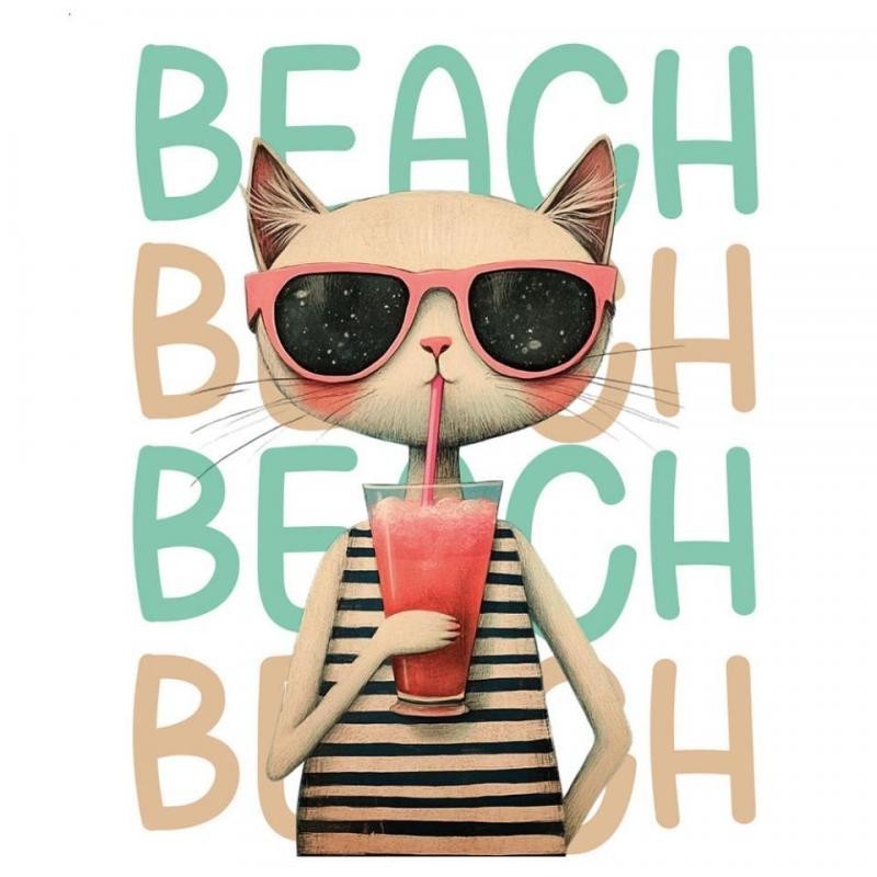 TRANSFER DTF TEXTIL 25X30CM BEACH CAT ARTIS DECOR