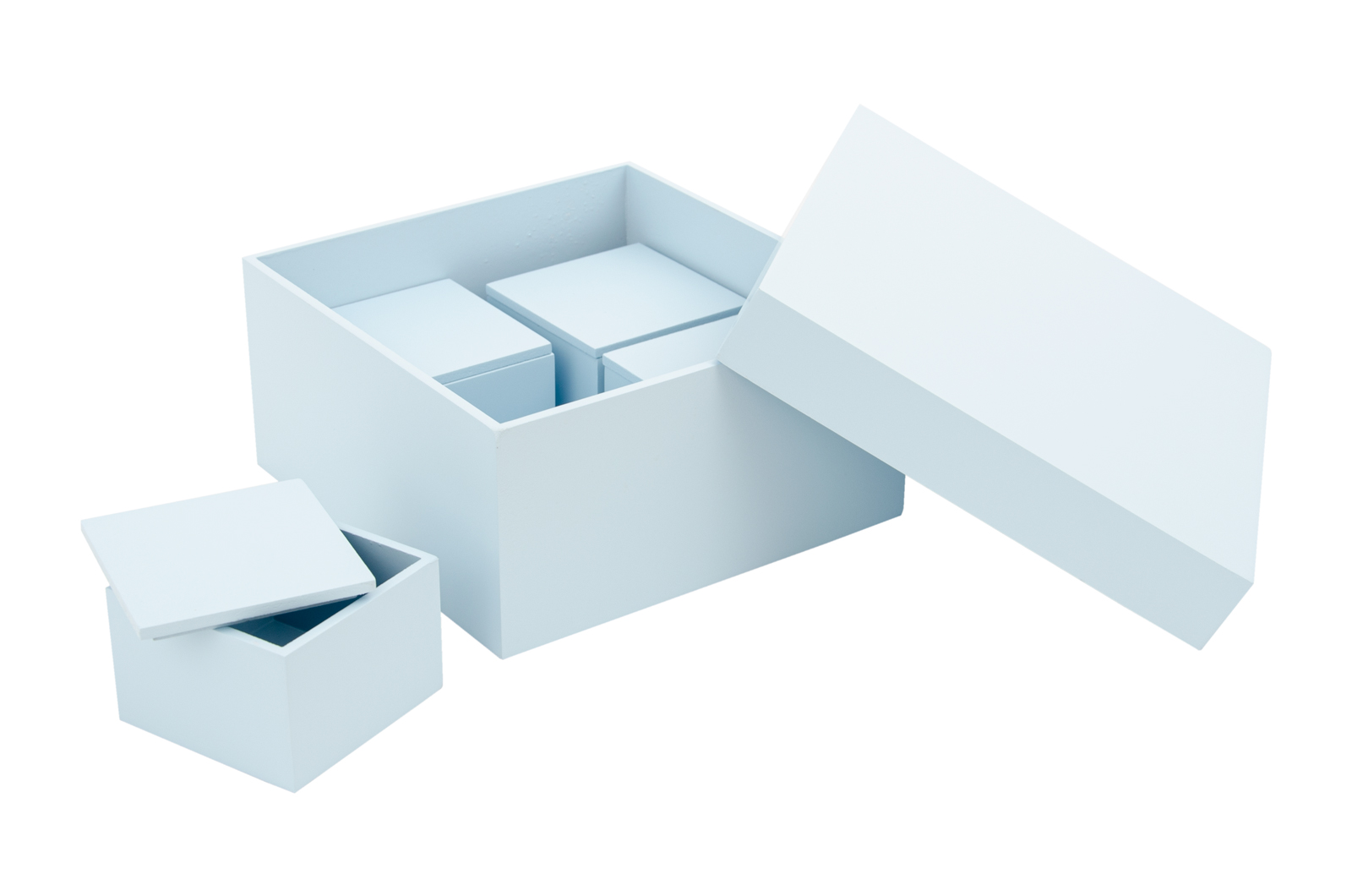 CAIXA RECORDAÇÕES LACADA AZUL 18X18X8.5CM C/4 CX 7X7X4.5CM