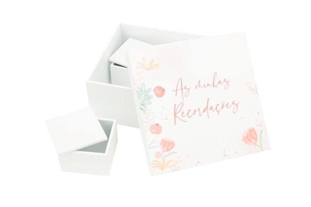 CAIXA RECORDAÇÕES MENINA LACADA BRANCA 18X18X8.5CM C/4 CX