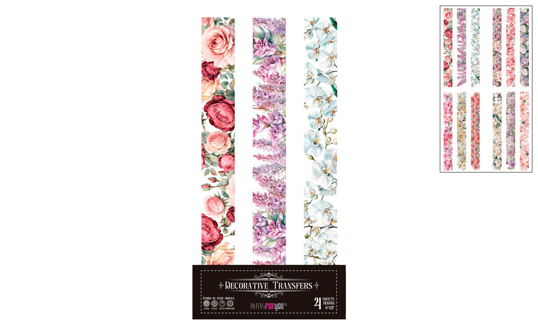 DECOR TRANSFERS 15X30CM BORDAS FLORES PFY-14619