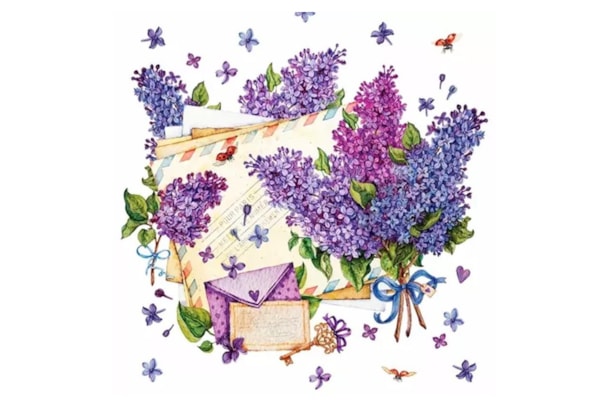 EMB. 20 GUARDANAPOS 33x33CM CARTAS E LILAS 389158