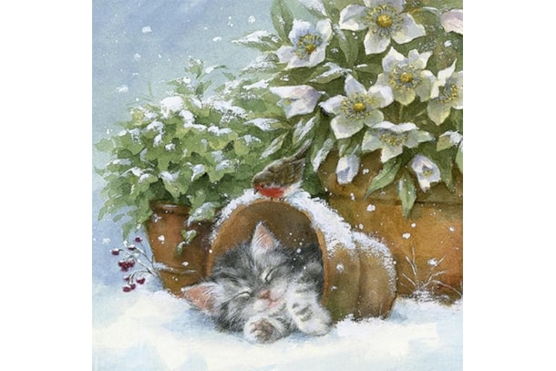 EMB. 20 GUARDANAPOS 33X33CM KITTEN SLEEPING IN PLANT POT