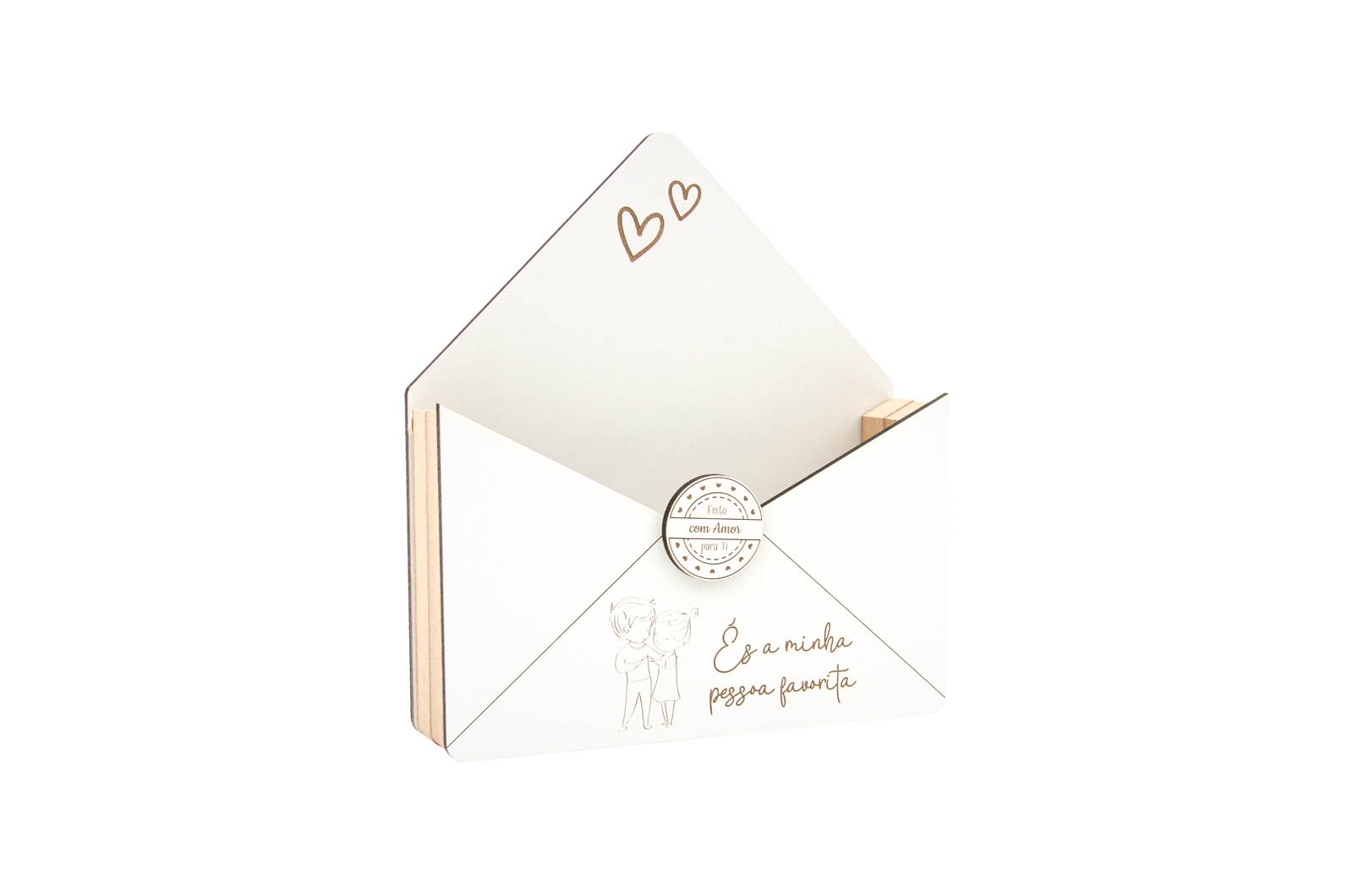 Este suporte em formato de envelope é uma peça diferenciada que une o encanto do rústico à delicadeza do design moderno. Com a mensagem gravada "És a minha pessoa favorita", é o artigo ideal para campanhas de Dia dos Namorados, mas a sua versatilidade permite vendas constantes durante todo o ano como presente especial. Este produto foi desenhado para servir de base a presentes criativos, como um arranjo floral ou até a criação de um "Kit Chá Gourmet" para os mais gulosos. Deixe a sua criatividade fluir, transforme esta peça num projeto único e partilhe connosco qual foi o resultado final!
