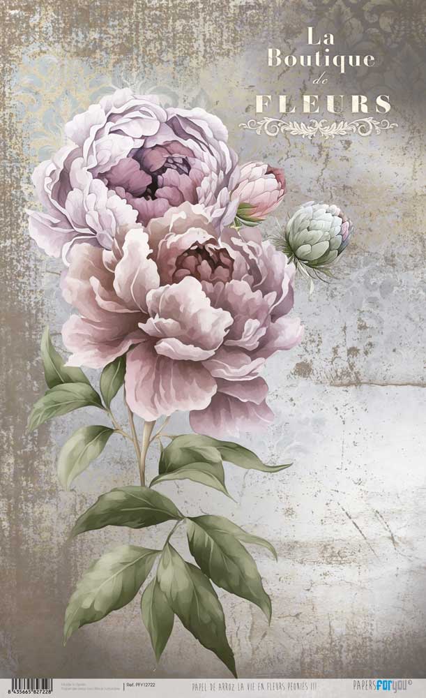 PAPEL ARROZ 54X33CM LA VIE EN FLEURS PEONIES III PFY-12722