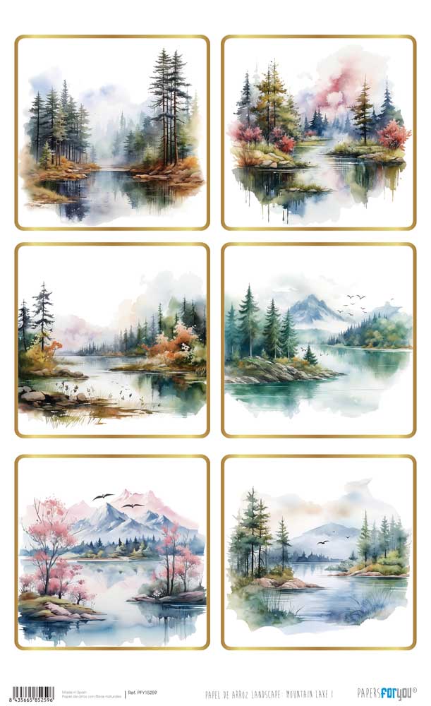 PAPEL ARROZ 54X33CM LANDSCAPE MOUNTAIN LAKE I PFY-15259