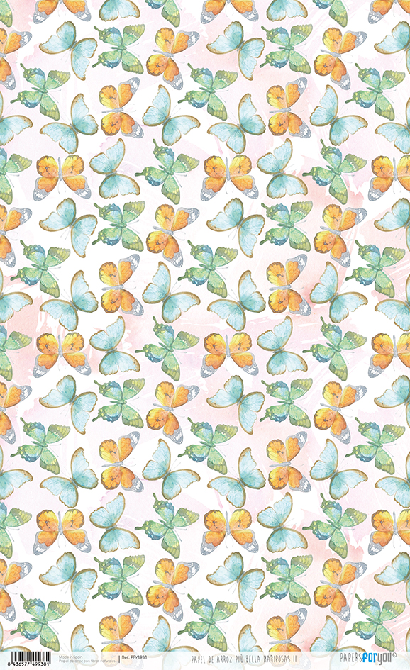 PAPEL ARROZ 54X33CM PIÚ BELLA MARIPOSAS II PFY-1938