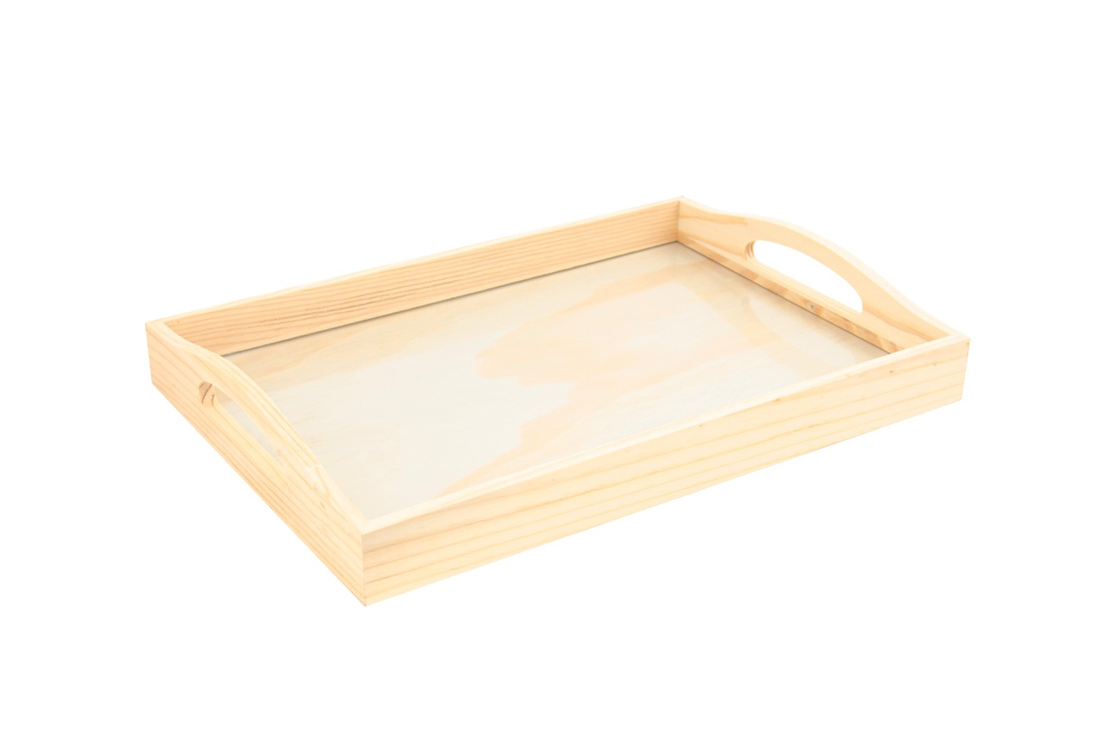 Tabuleiro rectangular com pega de madeira. Medidas:33.5x23x5CM