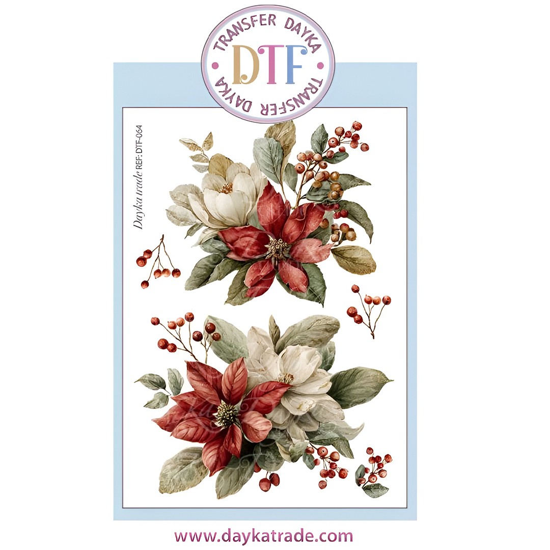 TRANSFER DTF-064G 20X28.5CM FLORES VERMELHAS