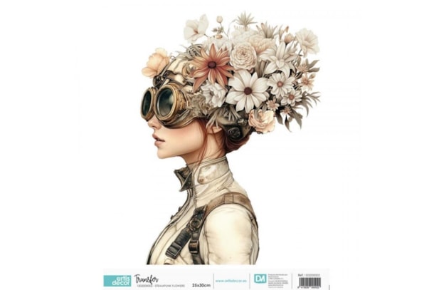 TRANSFER DTF TEXTIL 25X30CM STEAMPUNK FLOWERS ARTIS DECOR