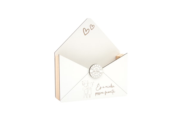 This envelope-shaped holder is a distinctive piece that blends rustic charm with the delicacy of modern design. Featuring the engraved message "You are my favorite person," it is the perfect item for Valentine's Day campaigns, though its versatility ensures steady sales year-round as a special gift.This product was designed to serve as a base for creative gifts, such as a floral arrangement or even a "Gourmet Tea Kit" for those with a sweet tooth. Let your creativity flow, transform this piece into a unique project, and share the final result with us!