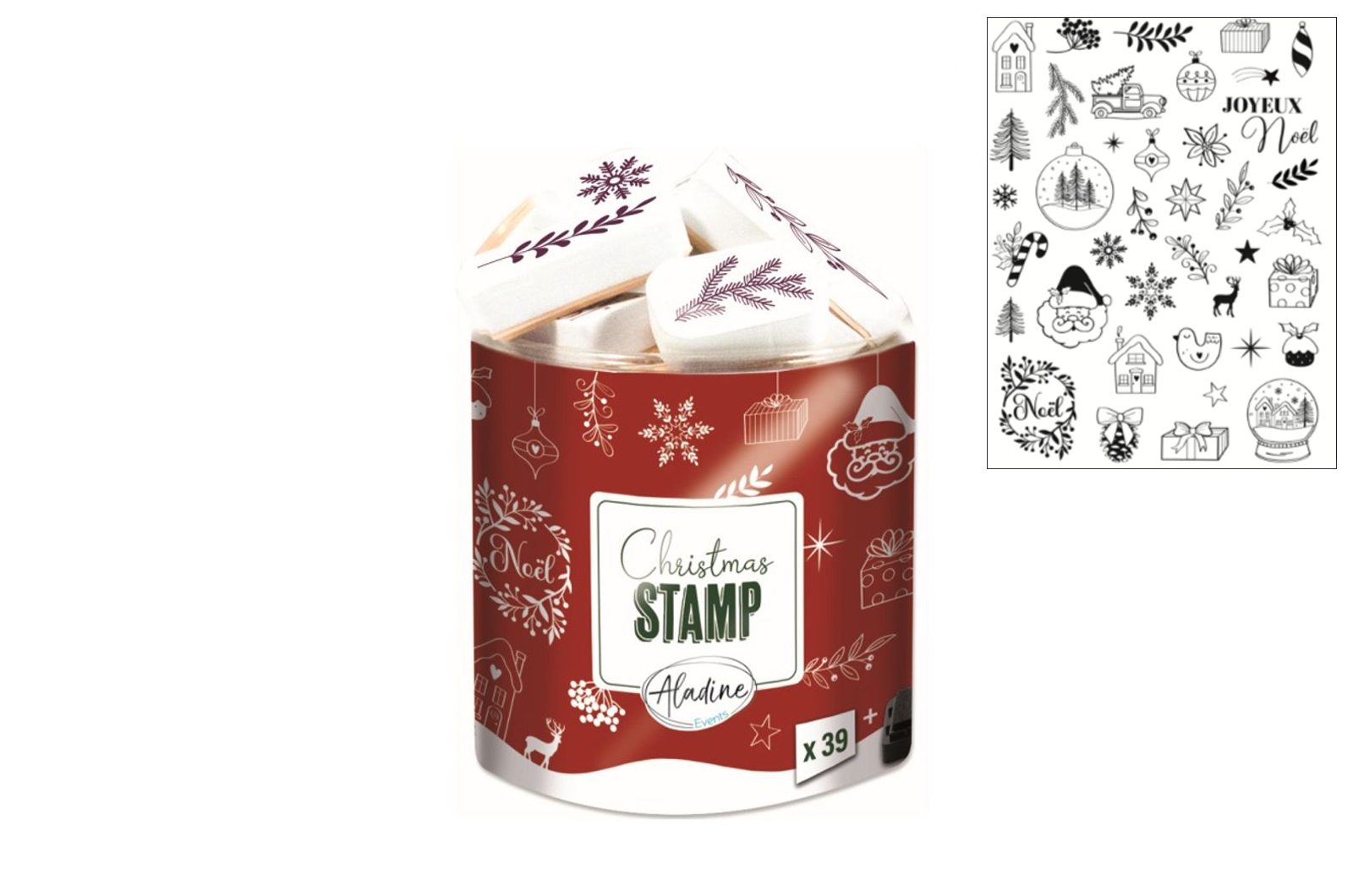 Add a magical and festive touch to all your Christmas creations with this Christmas-themed Aladine Creativ Stamp kit! Perfect for personalizing your greeting cards, invitations, gift tags, table decorations, and other DIY projects, these Christmas-themed stamps will add a warm and joyful atmosphere to all your creations.Aladine stamps are made of high-quality foam and durable rubber. Their precise cutting ensures a clean, smudge-free result, allowing you to achieve detailed impressions every time. This kit includes fine, detailed stamps with a variety of designs (snowflakes, fir trees, reindeer, snowmen, etc.) and a black ink pad for immediate use.Apply one or more ink colors, then apply the designs to all types of materials: paper, cardstock, fabric, and more. After use, we recommend washing your stamps under water with soap or dish soap to keep them looking pristine.