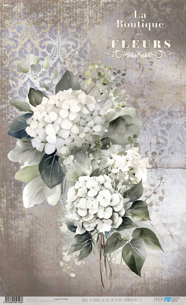 RICE PAPER 54X33CM LA VIE EN FLEURS HYDRANGEASIII PFY-12726