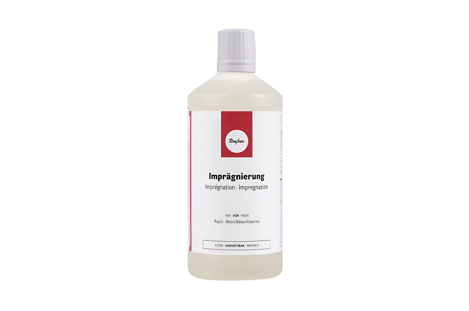 Do you want to protect your Raysin or concrete objects in the best possible way, both indoors and outdoors? Then this imperceptible waterproofing method is exactly the product you need.Waterproofing agent for Raysin and concrete, 250 ml bottle.The perfect water-based surface protection for Raysin and exposed concrete. The waterproofing agent, with a neutral appearance, acts as a water repellent and corrosion inhibitor, protecting against common dirt, limescale deposits, ice, weathering, discoloration and moss growth.Product features:• Water-based• Suitable for indoor and outdoor use• Breathable• Water-repellent• Stain-resistant• Suitable for contact with food• UV-resistant• Thermally stable after drying up to +350°C• Free from microplastics, PFAS, PFOA/PFOS and SVHCs (substances of very high concern)Instructions for use:The surface must be dry, absorbent, clean, free of ice and flat.Apply generously with a brush, roller or spray gun; apply 2 coats if necessary.After application, keep the treated surface free of ice and allow it to dry for at least 24 hours.The durability of the product depends on several factors, such as exposure conditions, climate, application method, usage and cleaning procedures, and generally ranges from 2 to 10 years.If a decrease in protective effectiveness is observed, it is recommended to clean the affected surface and apply a new coat.A preliminary test is recommended.Do not apply at temperatures below +10°C.Not suitable for polished surfaces.Subjectively, it may be suitable for coated surfaces (painted, varnished, printed, gilded, etc.). A preliminary test is recommended.