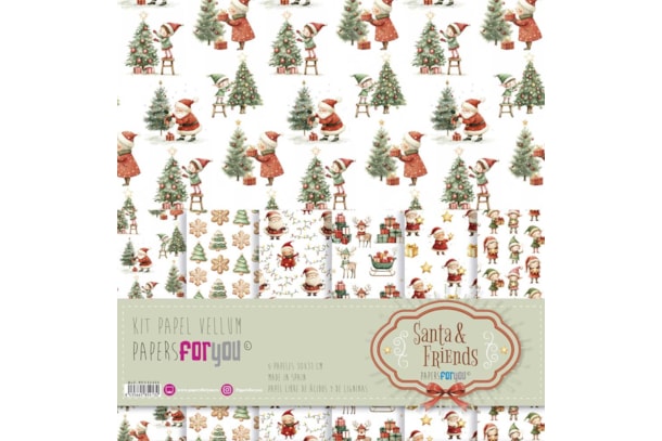 KIT 6 PAPEIS SCRAP VELLUM 30X31CM SANTA & FRIENDS PFY-15413