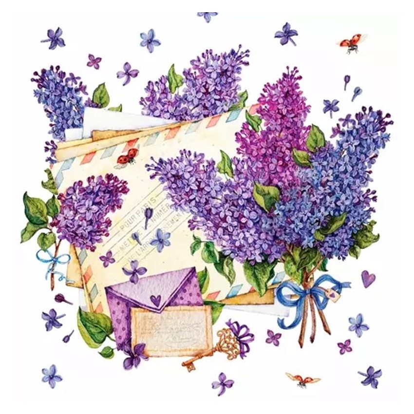 PAQUETE 20 SERVILLETAS 33x33CM CARTAS E LILAS 389158