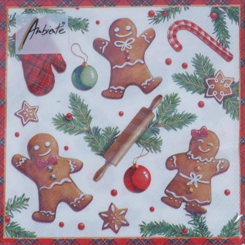 PAQUETE 20 SERVILLETAS 33X33CM GINGERBREAD COOKIES
