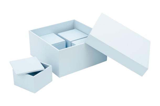 CAIXA RECORDAÇOES LACADA AZUL 18X18X8.5CM C/4 CX 7X7X4.5CM