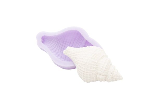Molde de silicone flexível em formato de búzio, ideal para criar peças artesanais com detalhes realistas. Perfeito para uso com resina, gesso, sabonete, vela, biscuit e outras técnicas manuais.