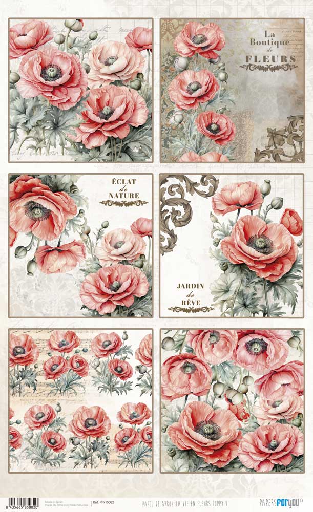 PAPEL ARROZ 54X33CM LA VIE EN FLEURS POPPY V PFY-15082