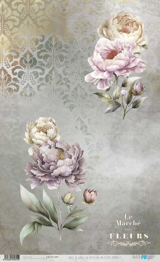 PAPEL ARROZ 54X33CM PETITE VIE EN FLEURS PEONIES I PFY-12895
