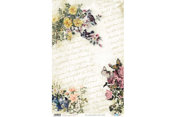 PAPEL ARROZ 54X33CM ROMANTIC BIRDS & FLOWERS PFY-1931